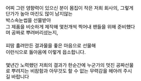 이미 많은 양의 제품을 찍어냈는데 무슨 이유인지 못팔게 되어서 팬들한테 택배비 받고 재고떨이함