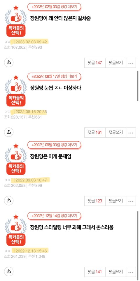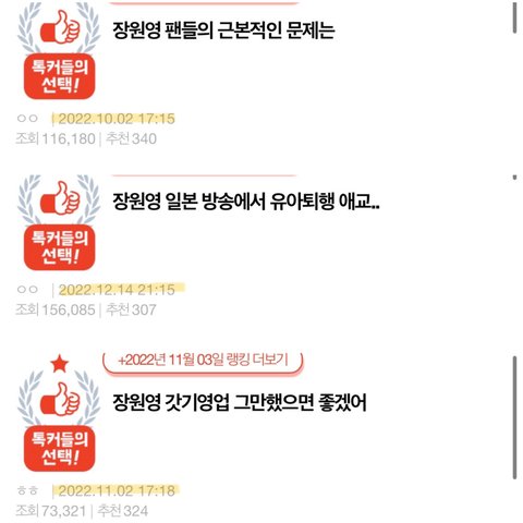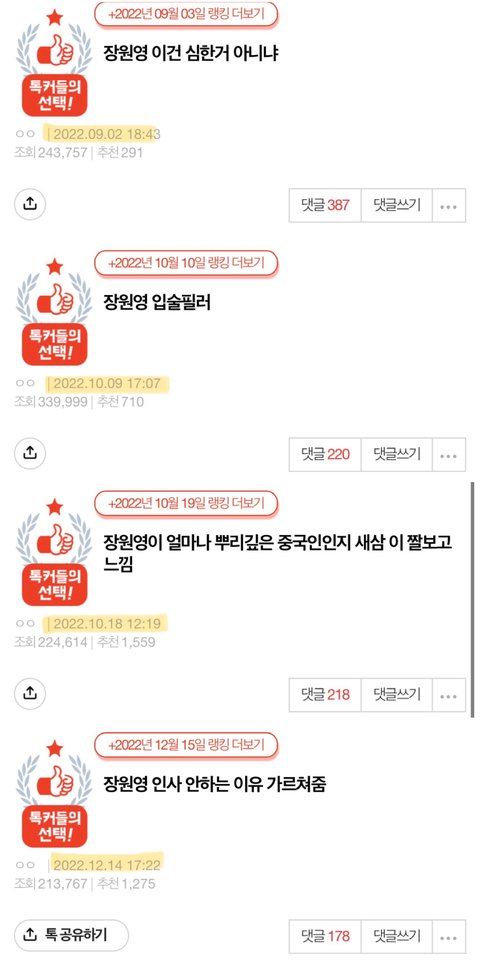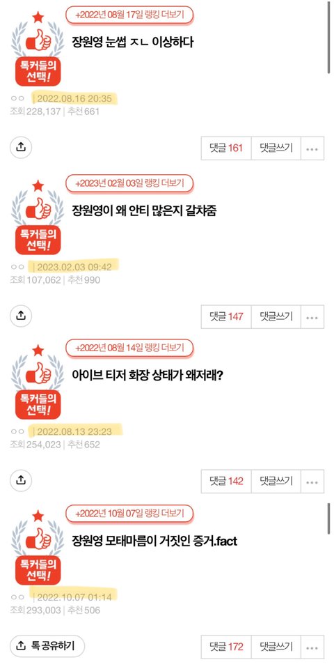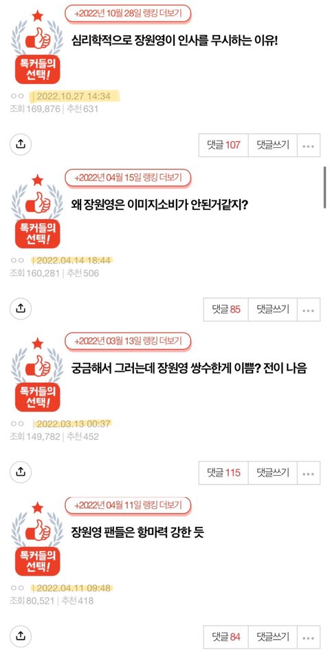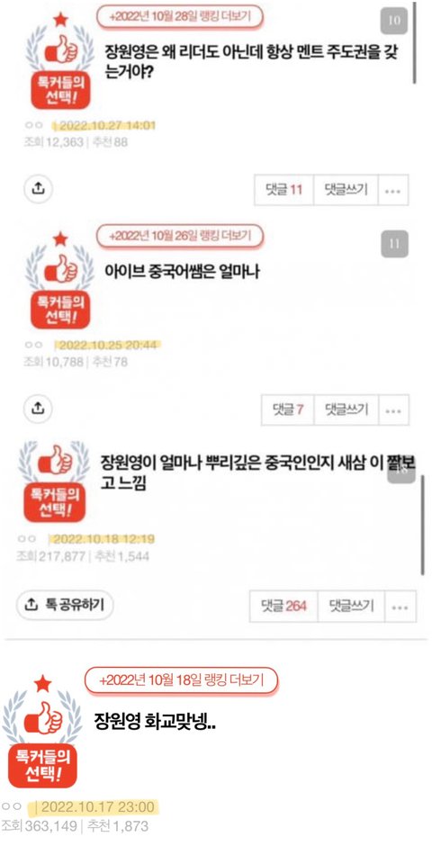 그럼 그때당시 장원영 죽이기도 전부 관련 있었을까 해서 가져와봤어