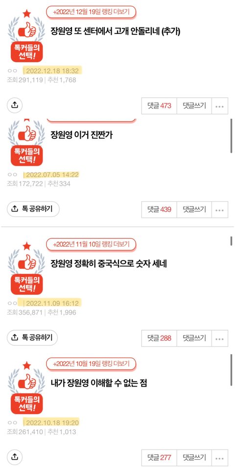 하루틈으로 올라왔던 억까 놀랍게도 전부 2022년이었음 그래서 손수 정리해서 가져와봄