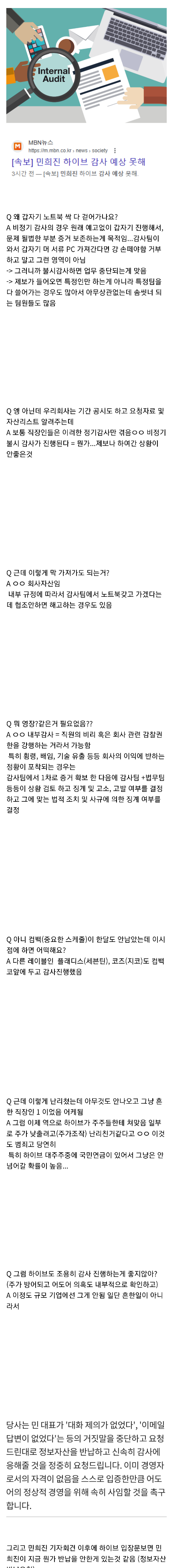 민희진이 크게 착각+외면하는 것, 비정기 감사 Q&A