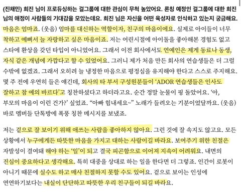 민희진과 뉴진스가 그런 면에서 새로운 길을 연 것 같아서 더 잘되고 상처받지 않고 건강하게 잘 했으면 좋겠고