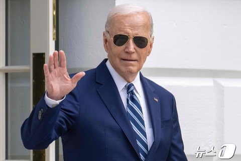 (사진2 설명) 조 바이든 미국 대통령이 25일(현지시간) 뉴욕에서 열리는 선거 행사에 참석하기 위해 워싱턴 백악관을 나서면서 손을 흔들고 있다. 2024.04.26 ⓒ AFP=뉴스1 ⓒ News1 우동명 기자