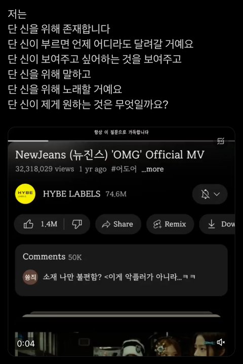 오엠지 뮤비 앞에 하니 나레이션