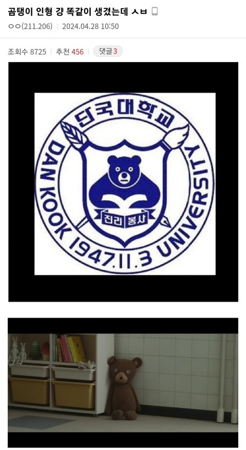 ㅅㅂ 단국대는 독립운동가 선생님들이 세우신 학교라고ㅠ그냥 그 교주놈이 단국대 출신인 거지 ㄷㅇㄷ랑 일절 관련없음 저 마스코트 곰돌이도 ㄷㅇㄷ의 곰이 아니라 단군신화의 곰임 멀쩡한 학교랑 엮지마라 기분드러움