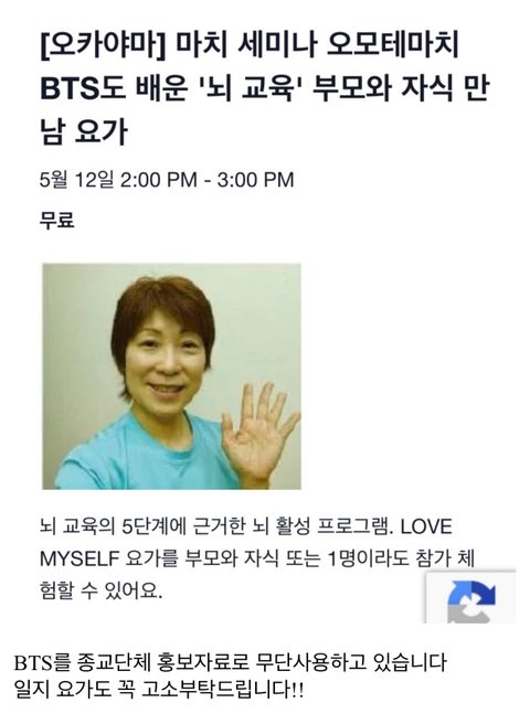 그리고 뇌교육 관련 단체들마다 방탄 언급돼있는곳 개많음... ㄷㄷ 진짜 뭐임?? 고소할거면 이사람들도 다 고소해야겠네? ㅋㅋㅋ 언제까지 입꾹닫할까 궁금하다 ㅎ