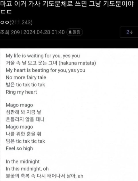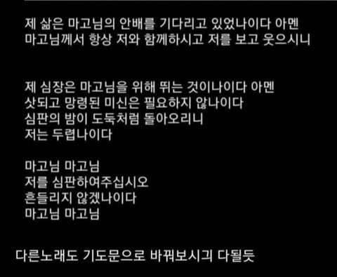 여자친구 마고 기도문이랑 아예 똑같음 ㄷㄷ
