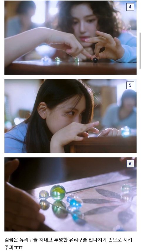 아일릿 뮤비에선 투명한 유리구슬 바닥에 떨어뜨리고