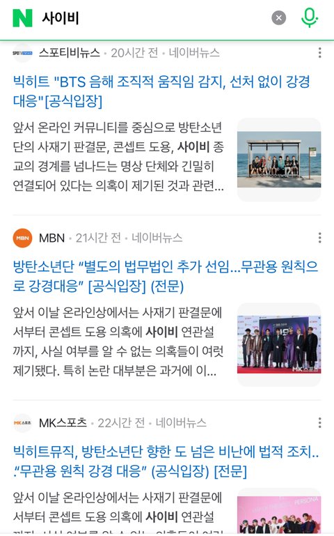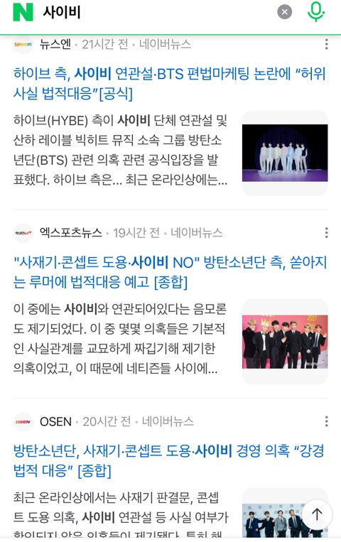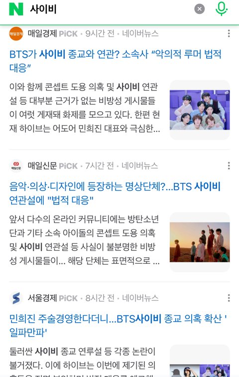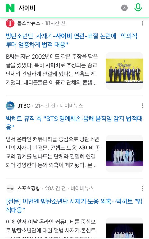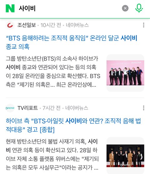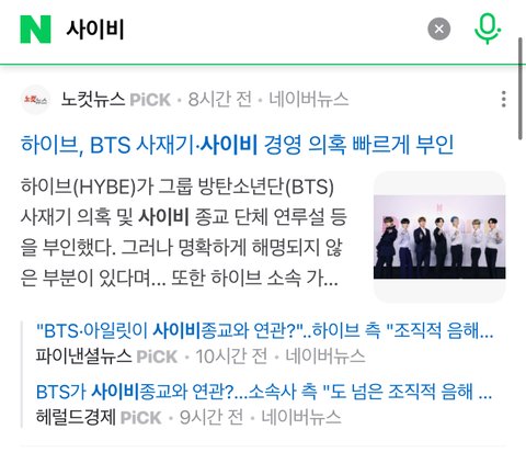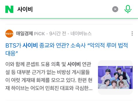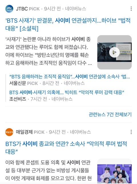 사이비 검색하면 방시혁이나 하이브보다 방탄이 더 많이 뜨고 사진도 방시혁이 아닌 방탄으로 도배돼있음