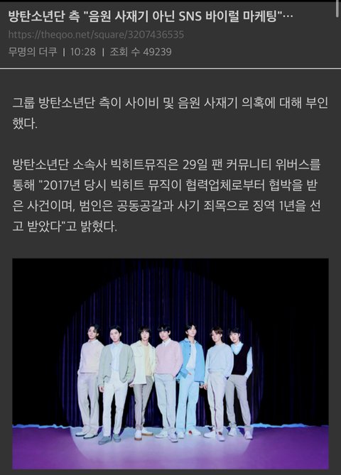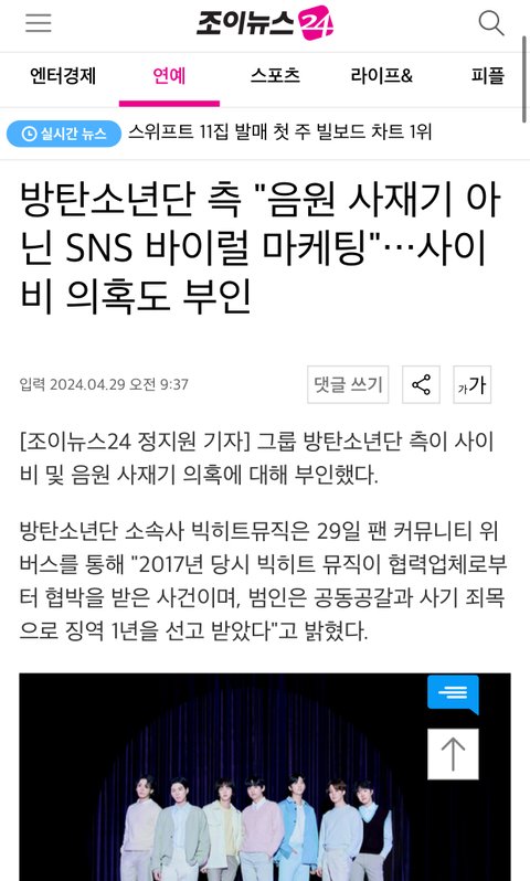 사재기를 하이브랑 방시혁이 한건데 왜 방탄이 해명하는것처럼 기사냄???