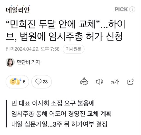 소속가수가 어떤 공격을 받아내고 있는지 전혀 신경도 안쓰고 ㅁㅎㅈ 쫓아내는 데에만 열심이네 할 거면 방탄도 같이 놔줘라 진심 부탁이다 이 ㅅ발놈들아