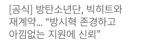 회사위주로 제목을썼네 회사를 더 좋아보이게....양심없구나 레이블 뭐 나올때도 방탄 내려치고 타돌 올려치기해서 제목 쓰던데
