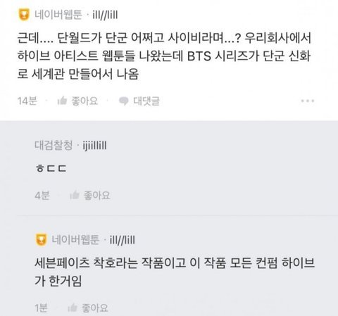 하이브 방탄 웹툰 세계관 : 단군신화 ㅋㅋㅋ
