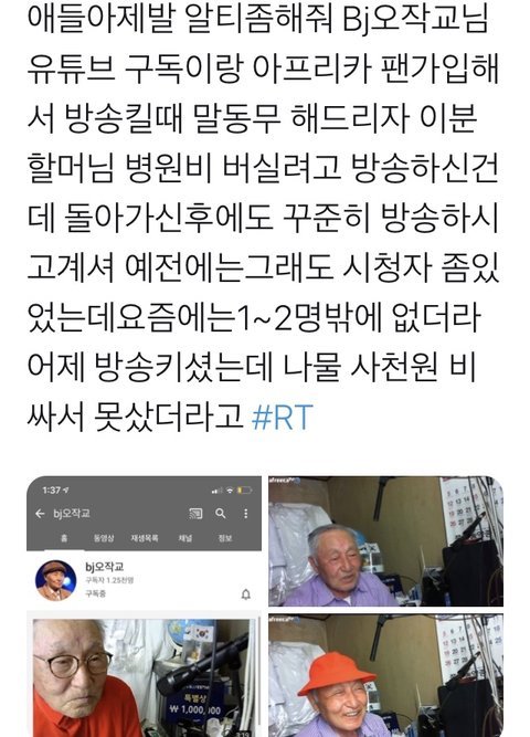 아프리카 보는 애 있으면 오작교 할아버지 방송 제발 봐줘ㅠㅠ