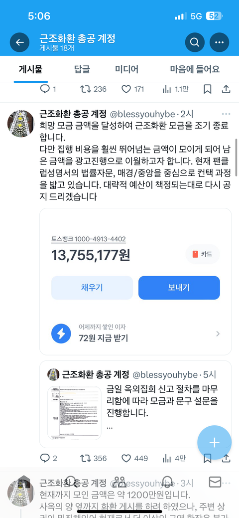 하이브가 제대로 아티스트 보호 안해서 ㄷㅇㄷ 논란으러 그걸러 트위터에서 방탄은 피떡되서 아미들 개빡쳐서 화환 보낸다고 모금했는데 1300만원 모임 ㄷㄷ