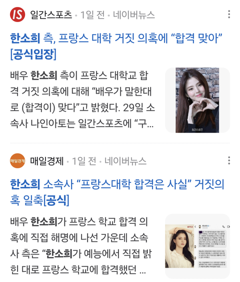 앞뒤가 안맞는 한소희 소속사해명
