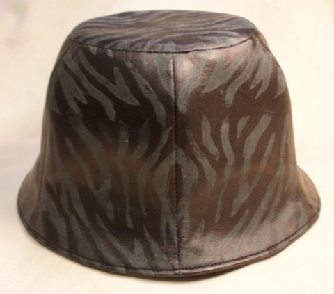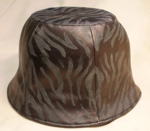 부드러운 브라운 컬러 민무늬 나파 가죽과 블랙 컬러 가죽에 호랑이 무늬를 염색하여 제작한 천연 가죽 모자입니다.(마디샤)