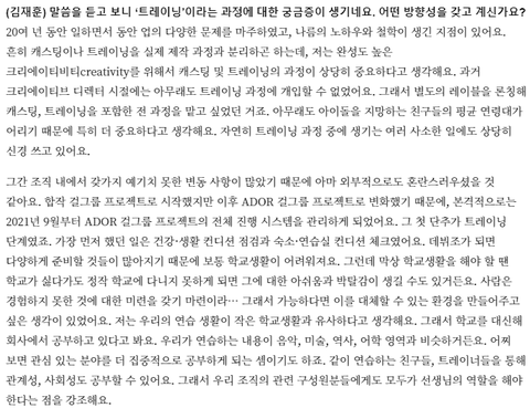 그리고 하이브 현 아이돌 시스템과 가장 달라보이는 지점