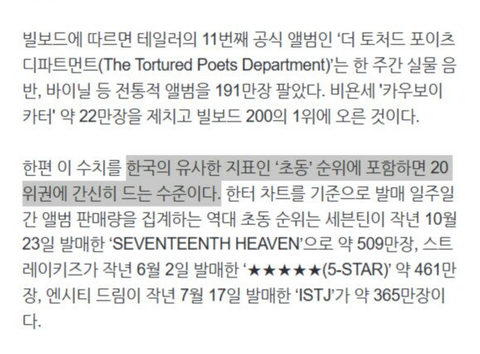 초동 191만장이면 세븐틴, 스키즈, 엔씨티는 물론이고