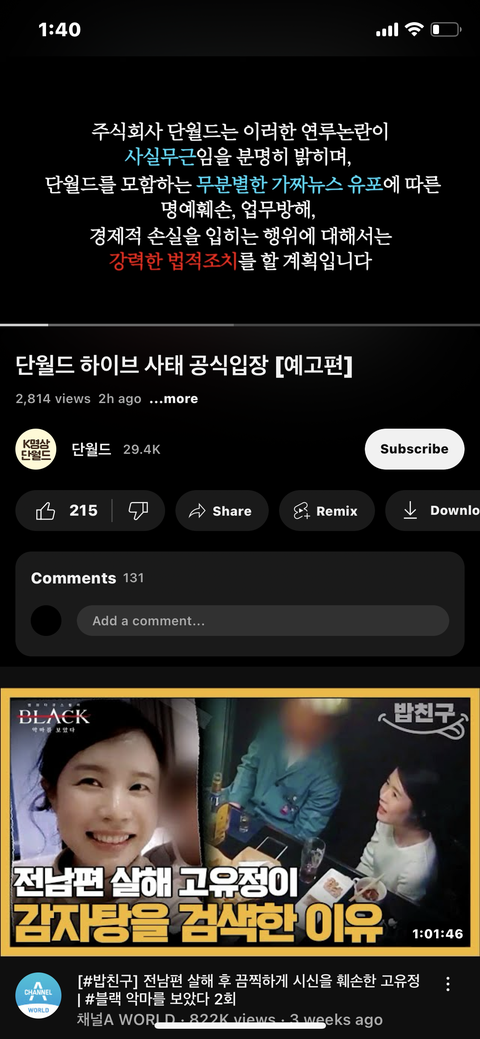 단월드 공식유튜브에서 공식입장올렸음 ㅋㅋ