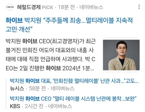 돈맛을 봤는데 사퇴 절대 안할듯 회사안에 뭔가 크게 걸리면 그때 어쩔수없이 그자리에서 내려오겠지 근데 주식땜에 저쪽만 사과하는꼴이 이미 저긴 글렀네 그냥 아티스트랑 팬들 무시가 맞아 특히 아티스트ㅇㅇ 팬들한테 사과는 바라지도 않는다