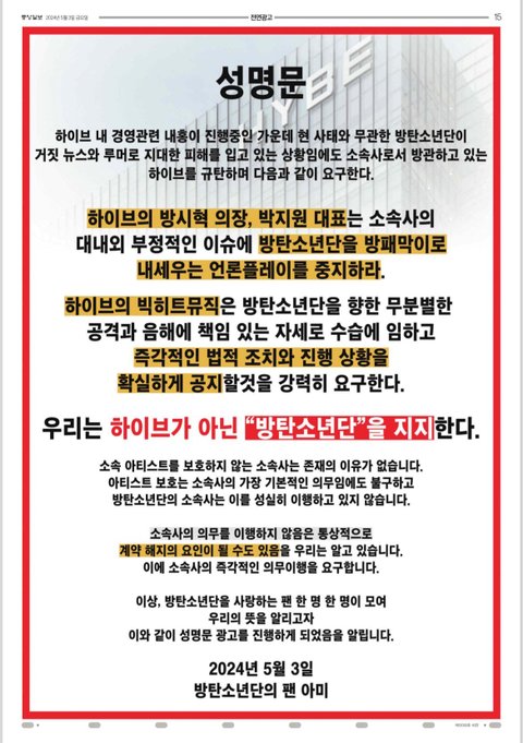 해외에서도 아미들 성명문하고 있나봐..
