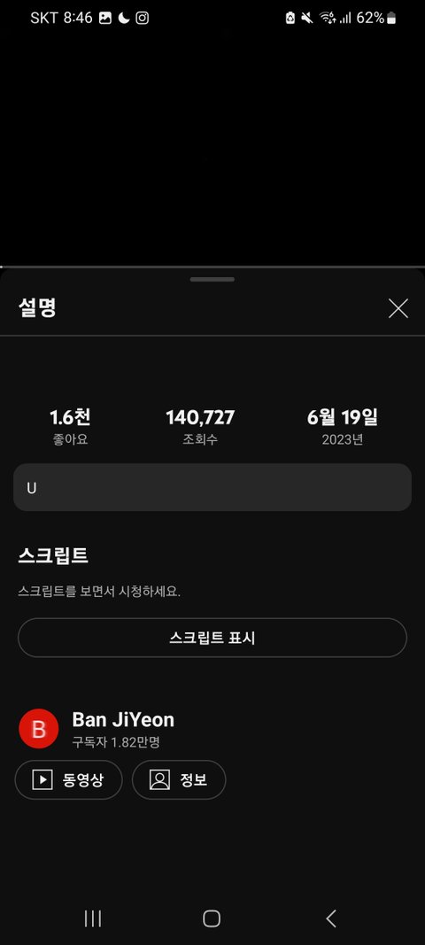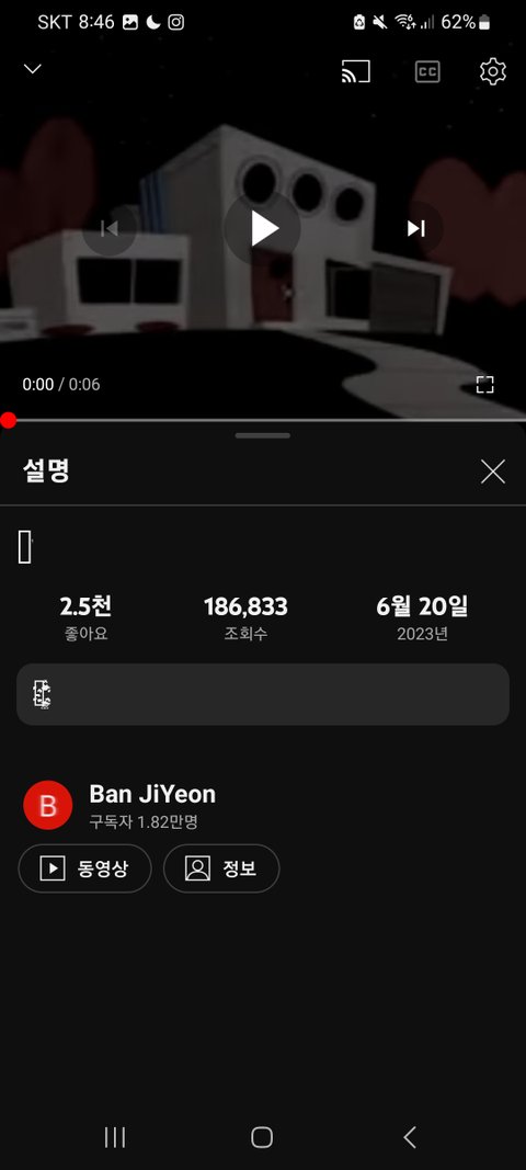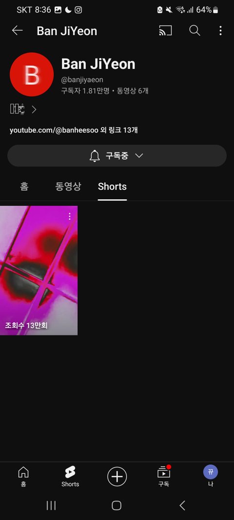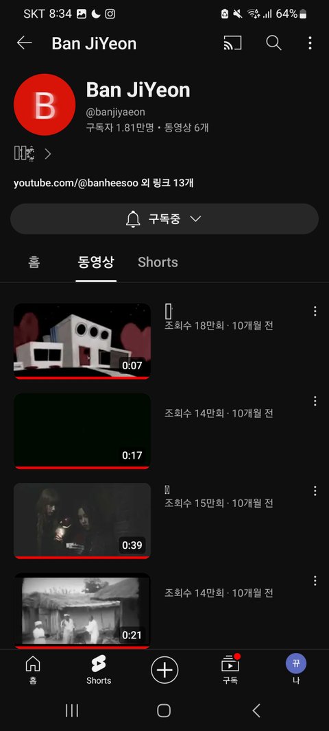 이게 반지연 채널인데 채널에 동영상은 딱 6개, 1분 안 되는 영상밖에 없어.