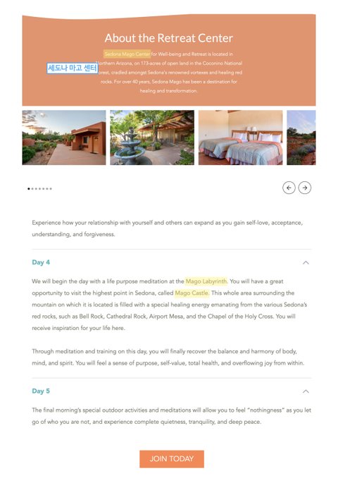 상단 메뉴의 [Price]를 보면 돈 내고 수업 받거나 아리조나 세도나 사막에 있는 센터에 다녀올 수 있음