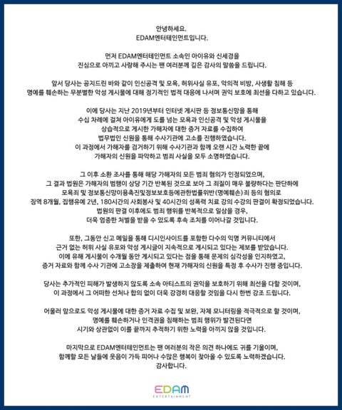 커뮤 모니터링도 팬들이 해 피뎊도 팬들이 따줘 급기야 돈까지 모아가면서 고소 똑바로 하라고 고나리 해야 돼 팬들이 원하는 고소공지의 올바른 예까지 떠먹여줄테니까 이대로만 해라 제발