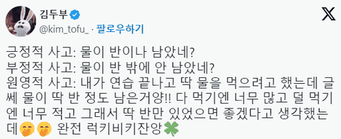 어떻게 저럼? 아니 신기함 사고방식이 엄청 긍정적인가