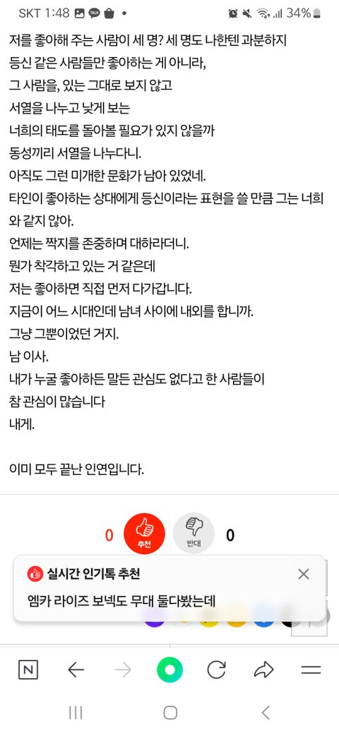 ㅎㅎ 장원영한테 여적여하는 버러지 개줌마 또 열심히 장원영 까댓으로 추천조작 돌려봤자 현실은 이거지롱 ㅋㅋㅋㅋㅋㅋㅋ ^^