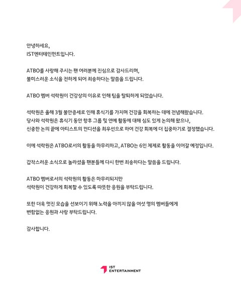 엥 ATBO 석락원 탈퇴한대