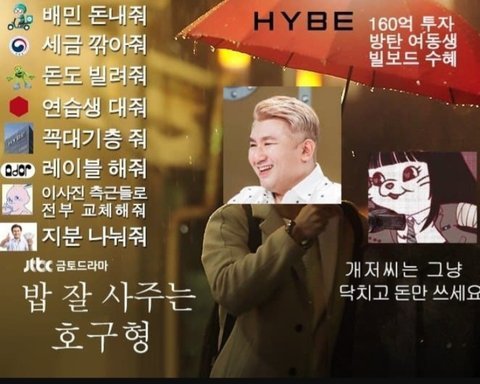 쓰니 개웃기네 투자금보다 몇배를 돈 벌어줬는데 돈 준것도 아니고 빌려준걸로 생색임? ㅋㅋ 하이브는 적자내고도 성과금 몇십억씩 받아가는 하이브 임원들한테 호구짓 당하고 있는거임