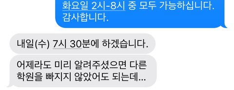 죄송하다고 양해 구하고, 다른 수업시간을 알려드렸어요. 그런데 답장이 저렇게 오는데요....저 학부모님도 상중이라는걸 인지하고 계신 상황입니다. 그런데 저런 답장...정말 이해가 안되는데요, 임종을 예상할 수 있나요...?
