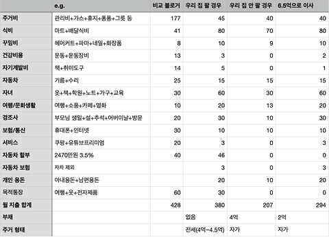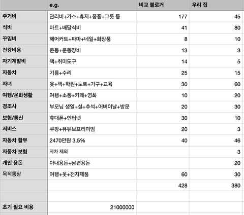 그 외에 이것저것 댓글을 참조해서 조정했고요. 실제로 살면 의도치 않은 금액이 나갈 수도 있을 것 같네요.