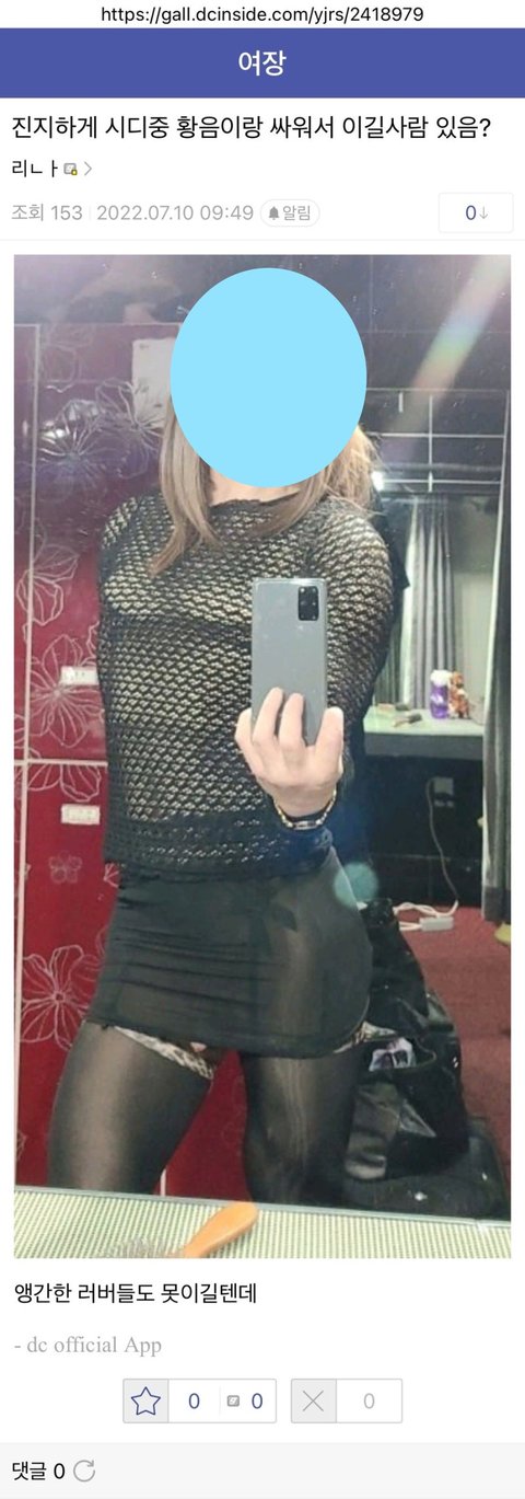 더 놀라운 사실은 조국신당 대표 조국의 딸 조민도 디시인사이드 여장갤 갤러였으며