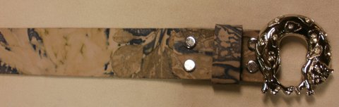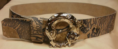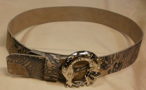 가죽에 천연 염색하고 표범 디자인 버클로 장식하여 제작한 빈티지 가죽 벨트입니다.(마디샤)