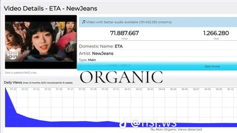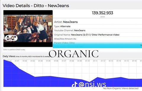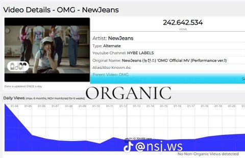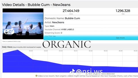 유튜브 조회수 원래 많이 사주는데 뉴진스거만 하나도 안 사 준 듯... 한편으론 대단하네 조회수 안 사고도 이렇게 많이 나오다니