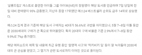 역시 판에서 까면 현실에선 정반대로 이루어지는구나 ㅋㅋㅋㅋㅋ 논어 읽었다고 무슨 똑똑한 컨셉질이라느니 어쩌느니 하면서 ㅈㄴ 까더니 현실은 논어 검색량 상승 ╋ 교보문고에서도 장원영으로 홍보 ╋ 피식대학 조회수 계속 상승 ㅋㅋㅋ