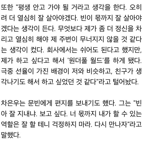 착해가지고...차은우가 죄책감 가질일은 아닌데 잘 이겨내고 행복해지길 바랄게