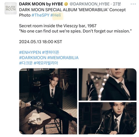 컨포도 원래 빌리프랩 트윗으로 올라오는데 다크문 스페셜 앨범이라고 다크문 트윗으로 올라옴