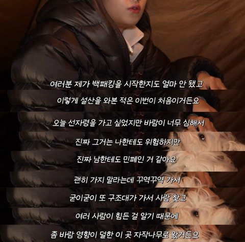 선자령이나 자작나무나 설산 위험한건 똑같은데 자기 구조하려면 다른 사람들한테 민폐니까 다른 설산에 왔어요ㅠ 이런 논리... 배려해주셔서 감사하다 해야하나
