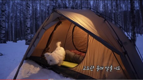 ㅋㅋㅋㅋㅋ아침에 일어나서 텐트에 짜루 없고 혼자 말하길래 뭐지 했더니.. 또 혼자 나가서 저 숲에서 혼자 놀고있대... 다 하얗고 길도 찾기 힘든곳에서 방치 아님?
