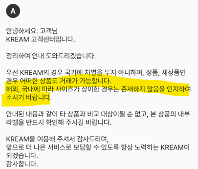 해외판과 국내판을 랜덤배송 하면서, 그 중 해외판 사이즈가 국내판 사이즈와 다르면