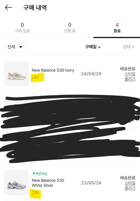 같은 모델 다른 색상인데 240을 시켰을 때 235가 오면 안된다고 생각했습니다.