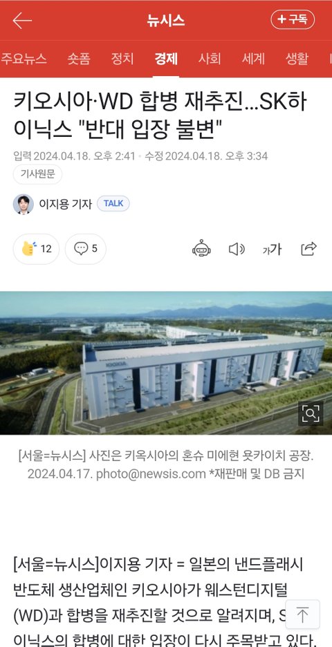 2위 sk 하이닉스 따라잡으려고 합병 추진