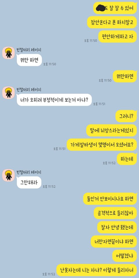 제가 그럼 뒤에내용 말고 앞에 잘자 라고 한 것에대한 답장으로 "너만 자면 끝이냐" 라는 말을 들으면 어떤 기분이 들지 사람들한태 물어보자해서 글을 쓰게되었습니다
