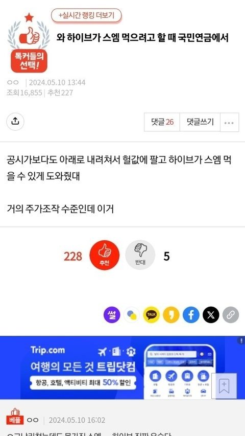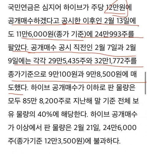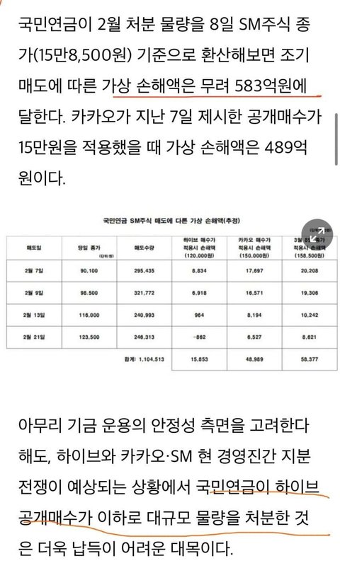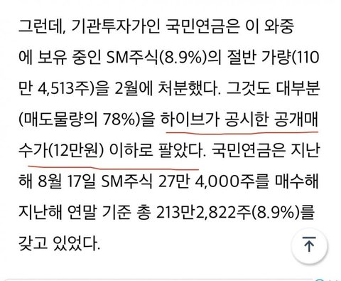 국민연금이 들고있는 sm주식 공시가 뜨고도 공시가 이하로 팔았대!!!!