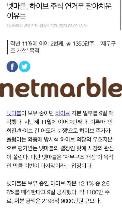 넷마블 하이브 사이비 단월드 ㄷㅇㄷ 민희진 방시혁 뉴진스 르세라핌 아일릿 아이브 컴백 주식