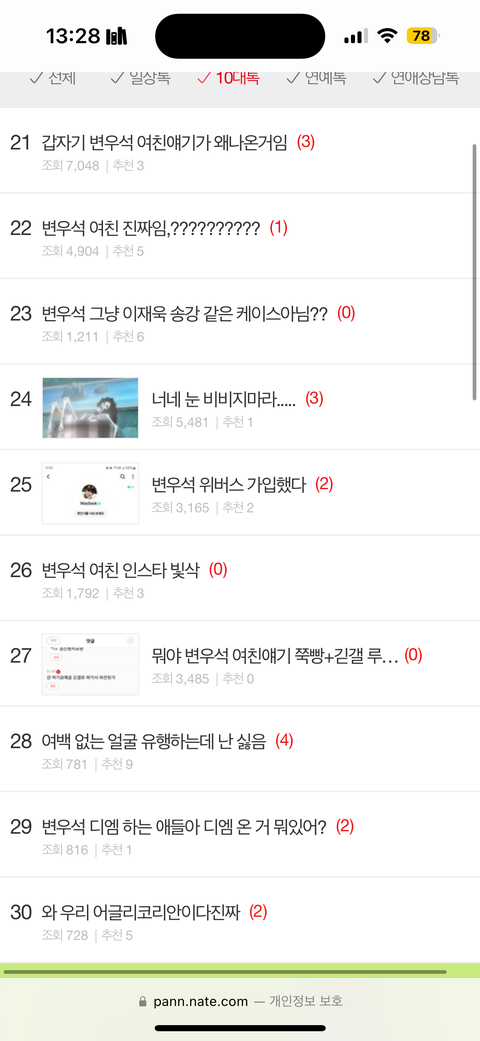 톡선 변우석 얘기 개많네