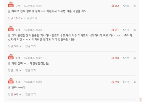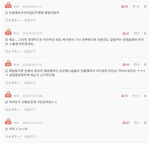 조만간 민희진 분쟁이 마무리 되고 하이브에서 대대적으로 이런 쓰레기 청소를 해주길 바람